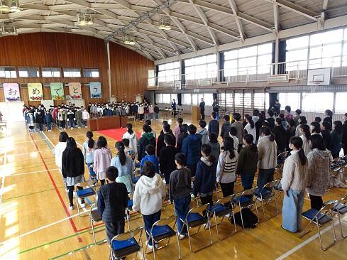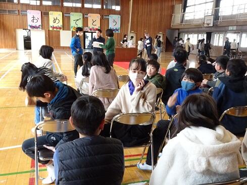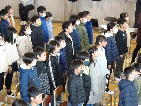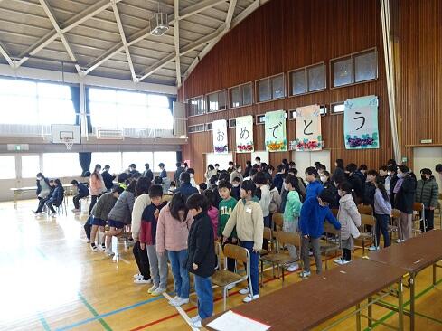 2年生から6年生の児童が体育館に集まり,令和6年度の離任式を行いました。