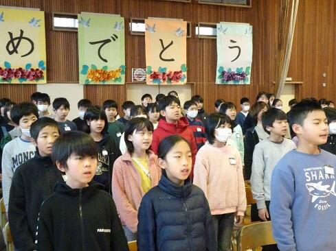 3月19日(火),卒業証書授与式を挙行しました。これまで,子供たちを「地域の宝」として,温かく育ててくださいまた,地域の皆様,域内の企業,事業所の皆様に感謝申し上げ,式が滞りなく終了しましたことを御報告いたします。この「滞りなく」の裏には,6年生の「心をひとつ」にしたドラマがありました。体調がすぐれない状況で出席した児童が数名いたことから,職員は証書授与の際,喜びの言葉の際,退場の際など,想定をしつくして参列しました。本校の危機管理の基本は,児童を軸に,事象を「いったん大きく捉えて,最終的に小さくまとめていく」という考え方です。そんな中,喜びの言葉の際に,何人かがいない状況となりました。体を休めている児童の言葉を,誰かがリカバリーしなくてはなりません。固唾を飲んだのは,職員だけ。何事もなかったかのように喜びの言葉,そして卒業式が終了しました。式後,担任に聞いたところ,突然の場合も想定して,式前に児童たちで話し合っていたとのこと。最後の最後まで「本番に強い」6年生でした。式場にて参列した4.5年生,教室から映像配信を見ながら参列した1年生~3年生,在校生も心をひとつに,卒業式に臨むことができました。児童たちの底力に感動です。そして,式中も適切に対応した職員たちに感謝です。