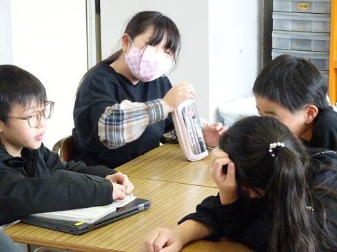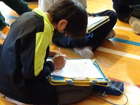 6年生の学習を少しだけ切り取ってみました。習字の学習では,書初めに取り組んでいました。思いや願い,書いてみたい文字などを表現していきます。それぞれの言葉をとおして,友達の新しい部分を発見です。「正々堂々」は文字も堂々と表現され,「うさぎ」は,もふもふ感が伝わる表現をしています。表現の深さが伝わります。社会の学習では,教科書ベースのテーマをもとに,友達とディスカッションしながら調べを進めたり,個人で深く調べたりしています。「学び方」がよく身に付いてきて,中学校への着実なステップとなっています。個人では,タブレットとは別に,参考書を片手に調べている児童がいました。ネットのほうが効率的なのではと思い聞いてみたところ,「検索ではこちらから調べに行くが,参考書は向こうから情報が入ってくる。想定外の発見もあり参考書も活用しています。」とのこと。単なる感想にも聞こえますが,追究するということの本質に触れいるのではないでしょうか。大切なことに気付かされ,勉強になります。