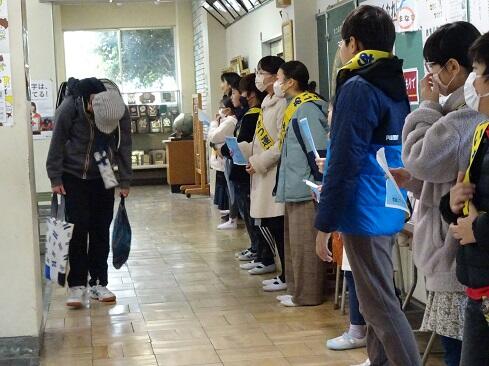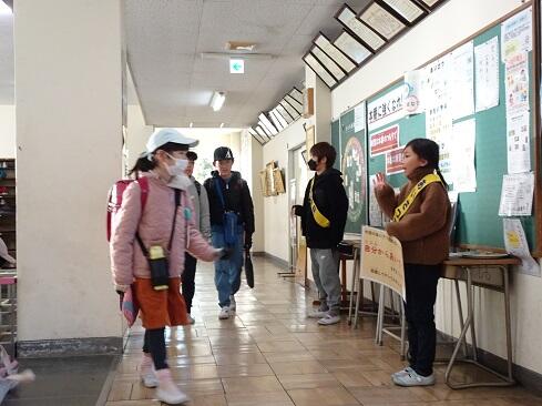 1月29日(月),毎週月曜日は,児童会計画委員会の「さわやかあいさつデー」です。今日は,笑顔で明るくあいさつ,自分からあいさつをめあてに取り組みました。最近は再びマスクが必要な状況になっているため,笑顔は確認することが難しいと思っていたら,計画委員さんから「目を見れば笑顔で挨拶しているのが分かりますよ。」と一言。目を見てあいさつがよい影響となっていることが分かりました。ほんの一瞬ですが,子供たちはしっかりコミュニケーションがとれているようです。お見事。にこにこあいさつ団も元気を添えてくれています。