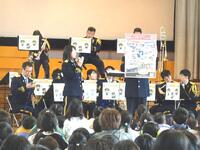音楽隊の皆さんは,1年生から6年生まで知っているジブリやディズニーの曲などを演奏してくれました。また,途中に寸劇を交えた防犯教育「いかのおすし」の説明をしてくれて,楽しい時間を過ごすことができました。