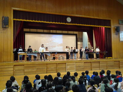 昨年度から始めた音楽集会,今年度2回目を行いました。今回は新田小のイメージソング「イシンデンシン」と音楽クラブの発表です。
