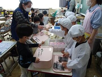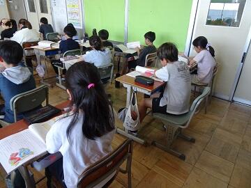 1年生が入学してから,6年生が朝の準備の手伝いに行っています。