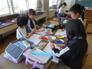 4月16日(木),5年生の教室では,じっと課題に向き合い考える姿が見られました。1組と3組は,道徳の教材文は「泣いた赤鬼」,2組は国語でスピーチの原稿作成の学習内容でした。自分の考えや思いを話したり書いたり様子が印象的でした。4年生は,図工での様子。様々な道具を試して,自分なりの表現を楽しみました。1年生は,初めての給食!給食当番も行いました。今日,給食当番でなかった児童からは,「いいなあ。やってみたいな。」とぽそり。初めてのことは,難しいけどかっこいい!!そんな思いが伝わってきました。