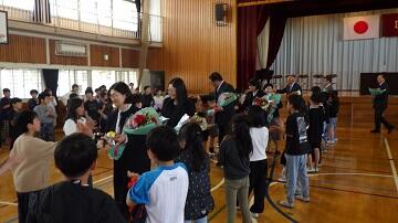 本校では,4月14日に離任式を行いました。児童はお世話になった先生との別れを惜しみながら,感謝の思いをもって式に臨むことができました。6年生の代表児童による作文や校歌斉唱にも感謝の気持ちが込められており,温かな雰囲気の中で式を行うことができました。