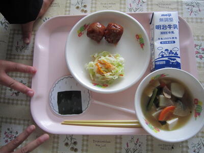牛乳 肉団子 ゆで野菜 フレンチドレッシング とんじる