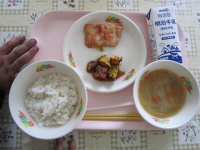 10月は「食品ロス削減月間」です。食品ロスとは,本来食べられるのに捨てられてしまう食品のことをいいます。給食の食品ロスでもっとも多いのは食べ残しです。食べ残しをしないためには「準備や後片付けを早くして食べる時間を長くする」「苦手な物でも口にしてみる」などの方法があります。食品ロスを減らすために自分たちでできることを考えてみましょう。