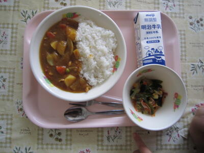 麦入りごはん 牛乳 チキンカレー かいそうサラダ 和風ドレッシング