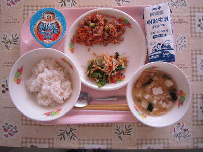 むぎいりごはん ぎゅうにゅう セルフおさかなどん おひたし とうふいりかきたまじる ガリガリ君