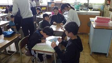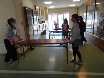 1年生が入学してから,6年生が朝の準備の手伝いに行っています。
