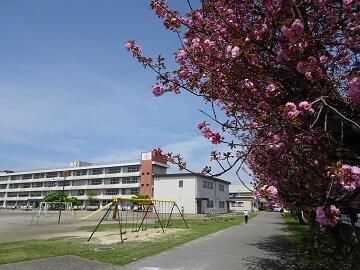 校庭の桜は,美しく校庭に舞っています。元気な笑顔に会えることを楽しみにしています。