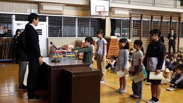 10月10日(金)に第1学期終業式を行いました。児童の作文発表では,がんばったことや今後に向けての抱負をしっかりとした口調で発表できました。校長先生のお話にも,皆,背筋を伸ばし,じっと耳を傾けていました。また,式に先立ち行われた「宮っ子心の教育表彰」でも,選出児童の凛とした表情に,この半年の自己の伸長が表れていました。