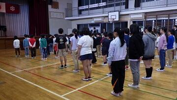 ↑ 授業の様子を真剣に聞いている様子。 ↑ 生徒会からの説明を聞いている様子。
