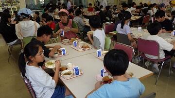 1学期最終日の給食の献立は,「手作りライスコロッケ」でした。ソースまですべて調理員さんの手作りでした。運動会の練習で頑張る子ども達には(大人も!),格別のおいしさでした。調理員さんには,今年度前半も美味しく安全な給食を作って下さり,ありがとうございました!新鮮で安全な食材をご提供くださっている地域の皆様も,ありがとうございました!