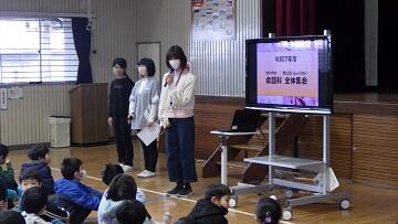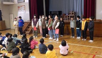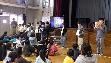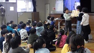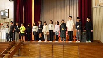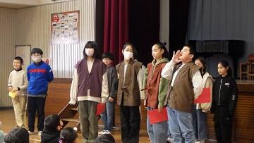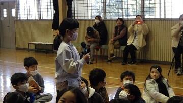 2月19日(木)のなかよしタイムから3時間目にかけて,今年度の会話科での学びを発表する「会話科集会」が行われました。6年生児童が司会進行をし,3年生は「読み聞かせ」,4年生は「劇 不思議な世界のお友達」,5年生は「民話語り 麻布じぞう」の発表を行いました。どの学年も講師の先生方から教えていただいた表現に磨きをかけ,のびのびと表現することができました。また,発表後は,それぞれの発表のよさに着目する感想を話す姿が見られました。笑顔あふれるすてきなひとときとなりました。なお,6年生の発表は,テレビ番組を作成中のため,後日校内放送にて発表いたします。