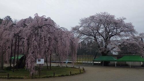 本日は朝からのあいにくの雨模様です。少し強い雨の時間帯もありましたが,10時現在雨が上がりました。雨にも負けず,花弁はほとんど散ることもありませんでした。数日雨が続くようですので心配ですが,周りのソメイヨシノも満開に近づき,校庭はとっても華やかです。