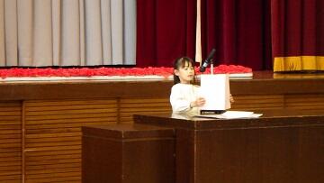 代表児童作文発表 昨年度を振り返り,今年度頑張りたいことを発表しました。