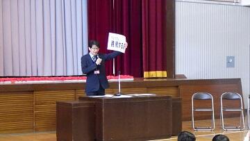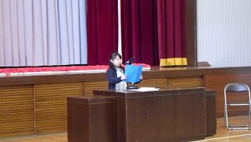 校長の話 担任発表の様子