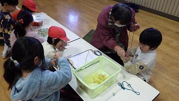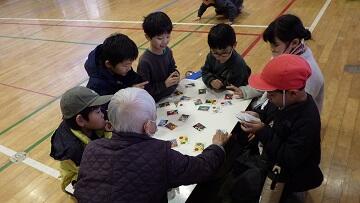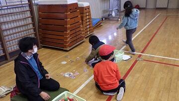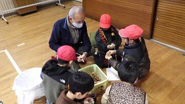 古ざくら会の皆様には,サツマイモの苗植え・収穫に続き,今年度3回目のお招きとなります。こま回し,かるた,おはじき・あやとり,お手玉,だるま落とし・めんこ,竹とんぼに分かれ,順番にすべての遊びを体験することができました。覚えた遊びを子供たちだけでも,夢中になって遊び始める姿も見られました。歓声の絶えない楽しいひと時となりました。古ざくら会の皆様,ありがとうございました。