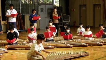 10月19日(日)に宇都宮短期大学須加友正記念ホールで行われる邦楽フェスティバル(19日(日)13:00~)での演奏に向けて,17日(金)5・6時間目に最終練習を行いました。今年度発表する曲は「世界に一つだけの花」。この曲は,平成18年度の卒業生送る会時に,子ども達からの発案で歌詞の一部をアレンジした「世界に一つだけの学校」として,ずっと歌い継いできました。今回の演奏会,そして150周年記念式典でも,さらに歌詞の一部を変えて箏に合わせて歌います。ご指導を頂いている,和久先生や前川先生からもお褒めの言葉を頂きました。当日欠席する子ども達からも,温かなエールの言葉が伝えられ,とても嬉しそうにしていました。当日の演奏会もとても楽しみです。