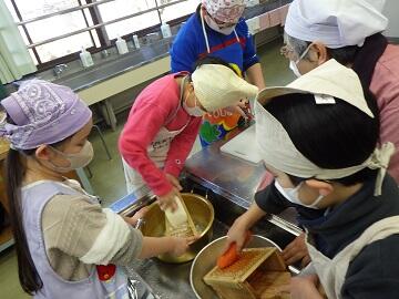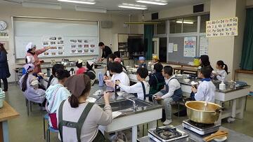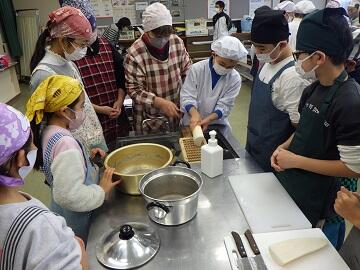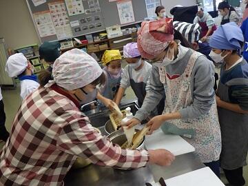「鬼おろし」を使って,大根や人参を下ろすなど初めての体験に,緊張しながらもグループで楽しそうに調理にあたれました。煮込んでいる間には,「しもつかれ」の由来などを紙芝居で,ご説明頂きました。