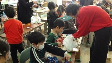 12月6日(土)に,全市一斉学校公開行いました。保護者,地域の方々,地域協議会委員様,未就学児の保護者様など多くの方々にご来校いただきました。本校の特色ある活動である文化人の先生方による「大書」,「風船たまご制作」,「箏の演奏」や下野民話語りの会やとちぎテレビから外部講師をお招きしての「会話科」や本校常勤AETのガーリー先生による「外国語や外国語活動」などを中心にご参観頂きました。低学年では生活科の「リース作り」も行われ,笑顔あふれる公開日となりました。