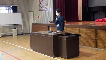 12月25日(木)が今年最後の登校日となりました。朝の時間に,冬休み前集会が行われました。校長先生からは,二つの「あ」(あいさつとあんぜん)について,青木先生からは,冬休み中に気を付けることについてそれぞれ話がありました。子供たちは,姿勢よく耳を傾けていました。