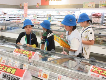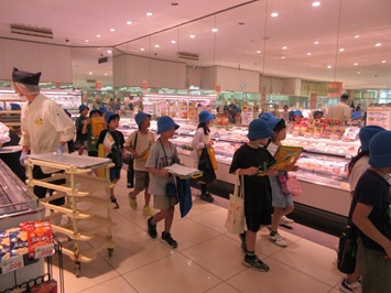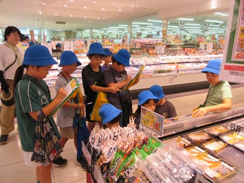 児童たちは見学して分かったことやお店の方から聞いたことを熱心にメモしていました。商品を売るための工夫やスーパーマーケットで働く人の仕事努力について更に理解を深めていました。