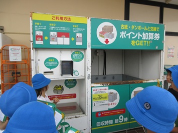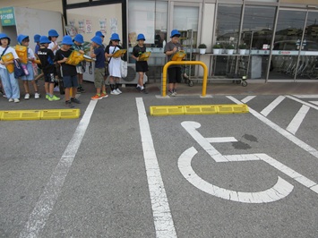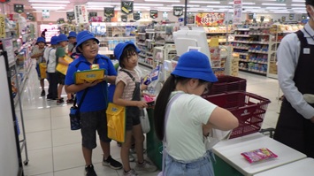 3年生の児童が社会科の学習で,たいらや西川田店へ校外学習に行きました。駐車場やリサイクル回収機,食品売り場のほか,普段は入ることができない店のバックヤードや調理場なども見学させてもらいました。