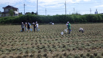地域の方が所有されている田んぼで,どのような生き物がいるのか調べるとともに,虫捕りもさせていただきました。