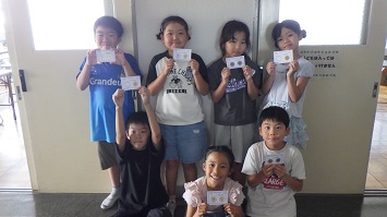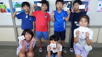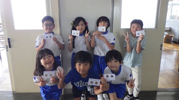 学校長から直接金メダルシールが貼られた「オリンピックカード」を渡され,どの児童もとても嬉しそうな表情でした。表彰された児童の皆さん,おめでとうございます。10月6日(月)に3年生の金メダリストたちを表彰する予定です。その様子も後日お伝えしたいと思います。