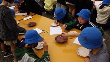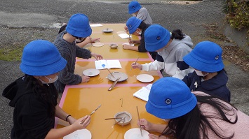 はじめに,益子焼の窯元を訪れ,絵付け体験したり,陶芸を見学したりしました。