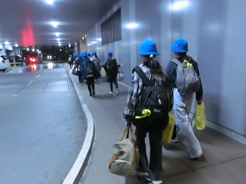 京浜工業地帯や横浜の夜景を見ながら,宿泊するJALシティ東京豊洲へ向かいました。予定通りホテルに到着し,バスの中でルームキーをもらって各部屋へ移動しました。