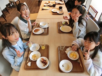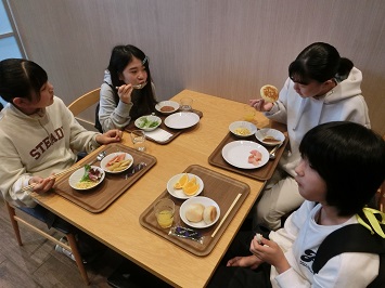 眠そうな児童もいましたが,2日目の活動に備えて朝からもりもり食べていました。