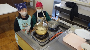 いわむらかずお作の「14ひきのかぼちゃ」に登場する「かぼちゃスープ」を提供しました。絵本に出てくる給食を提供することで,食育と読書両方に興味を持ってもらおうという思いをこめて計画しました。