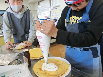 クレープが焼けると,好きな具材を乗せて完成です。お味はいかがだったでしょうか。