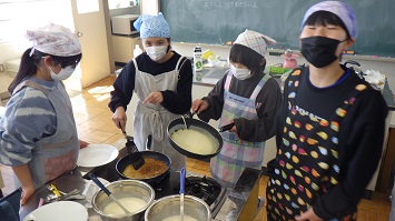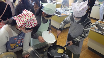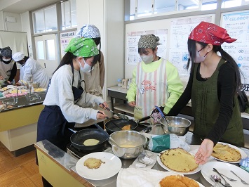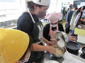 卒業までいよいよ3週間を切りました。これまで共に過ごしてきたクラスメイト達と思い出を残すため,クラスごとに米粉クレープづくりをしました。