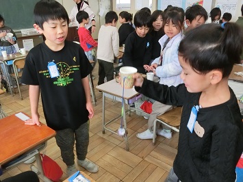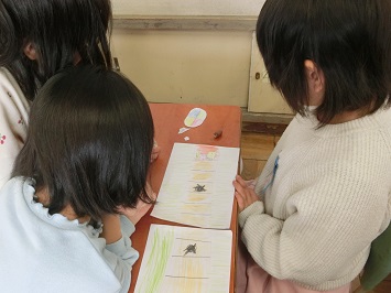 この日はできた作品をクラスの児童同士で紹介し合いました。