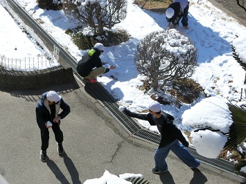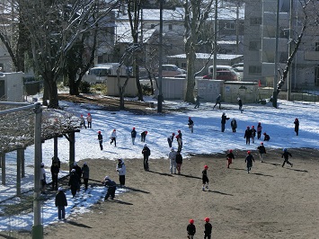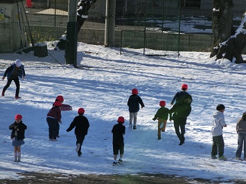 業間になると,校庭で雪遊びを楽しむ児童の姿が見られました。久しぶりに降った雪がとても嬉しかったようです。