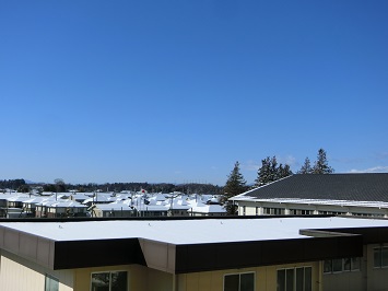 本校では,空気の澄んでいる冬の時期,富士山を見ることができます。この日は,北校舎3階東側にある6年生の教室から撮ってみました。雪に覆われた,白色の富士山を眺めることができました。
