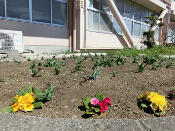 温かい日が続き,姿一小にもたくさんの花々が咲き始めました。