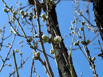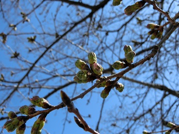 ↓ 桜(ソメイヨシノ)の木を見てみると,一週間前に比べてつぼみがふくらんでいる様子が分かります。