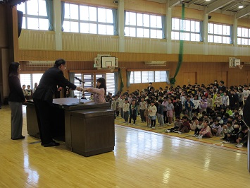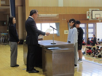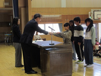 贈呈式が終わると,小学校最後の表彰式を行いました。最後ということもあり,宇都宮市青少年賞,宇都宮市模範青少年賞,善行児童,宮っ子心の教育表彰 教育委員会賞,教育長奨励賞,義務教育皆勤賞など,多くの表彰がありました。