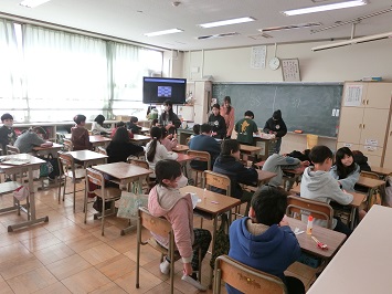 次に,それぞれの教室に移動して,小学校がどんなところなのかクイズ形式で紹介しました。