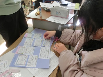 また,「なわとびカード」に書かれた技の一覧から新しい技に挑戦したり,跳べた回数を数え合ったりしている児童もいました。なわとびカードは姿川地域学校園の小・中学校共通のもので,子どもたちの体力向上を目的とした取組みの一つとして活用しています。