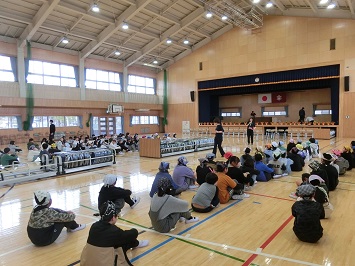 最後に,児童指導担当の教諭から春休みの過ごし方について話しました。春休み中も地域の方々のことを考えて行動すること,交通安全に気を付けて安全に過ごすことについて児童に話をしました。