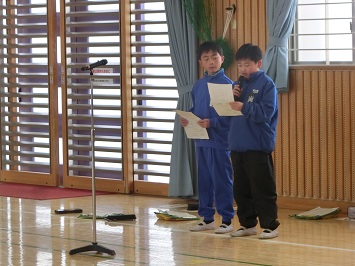 代表児童からは,暑い日も寒い日も,児童が安全に登校できるようにいつも見守ってくださっている交通指導員さんへ,感謝の言葉を伝えました。そして,中央委員の児童が,各クラスの代表児童が書いた感謝の手紙と,お花をプレゼントしました。