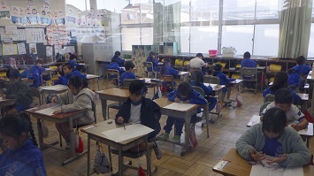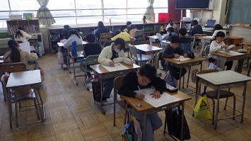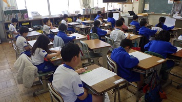 1,2年生は50題,3~6年生は20題の問題を15分間で解きます。よく問題を確認しながら集中して解いていました。