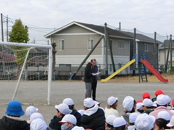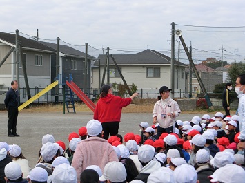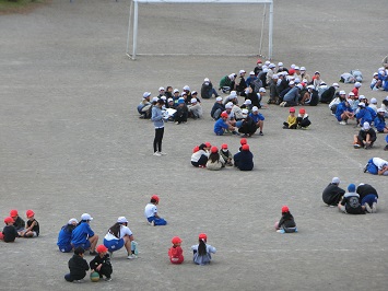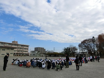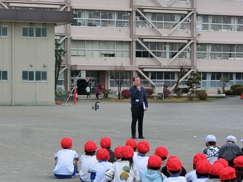 全児童,職員の避難が確認されると,安全担当の職員と学校長から,自分の命を守る行動を心がけるようお話がありました。