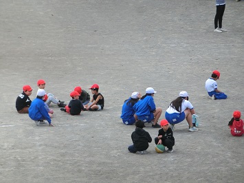 校庭では,ドッジボールと中線踏みが人気でした。上級生が下級生のために,ボールを譲ったり,ゆっくり走って追いかけたりする場面が多く見られました。
